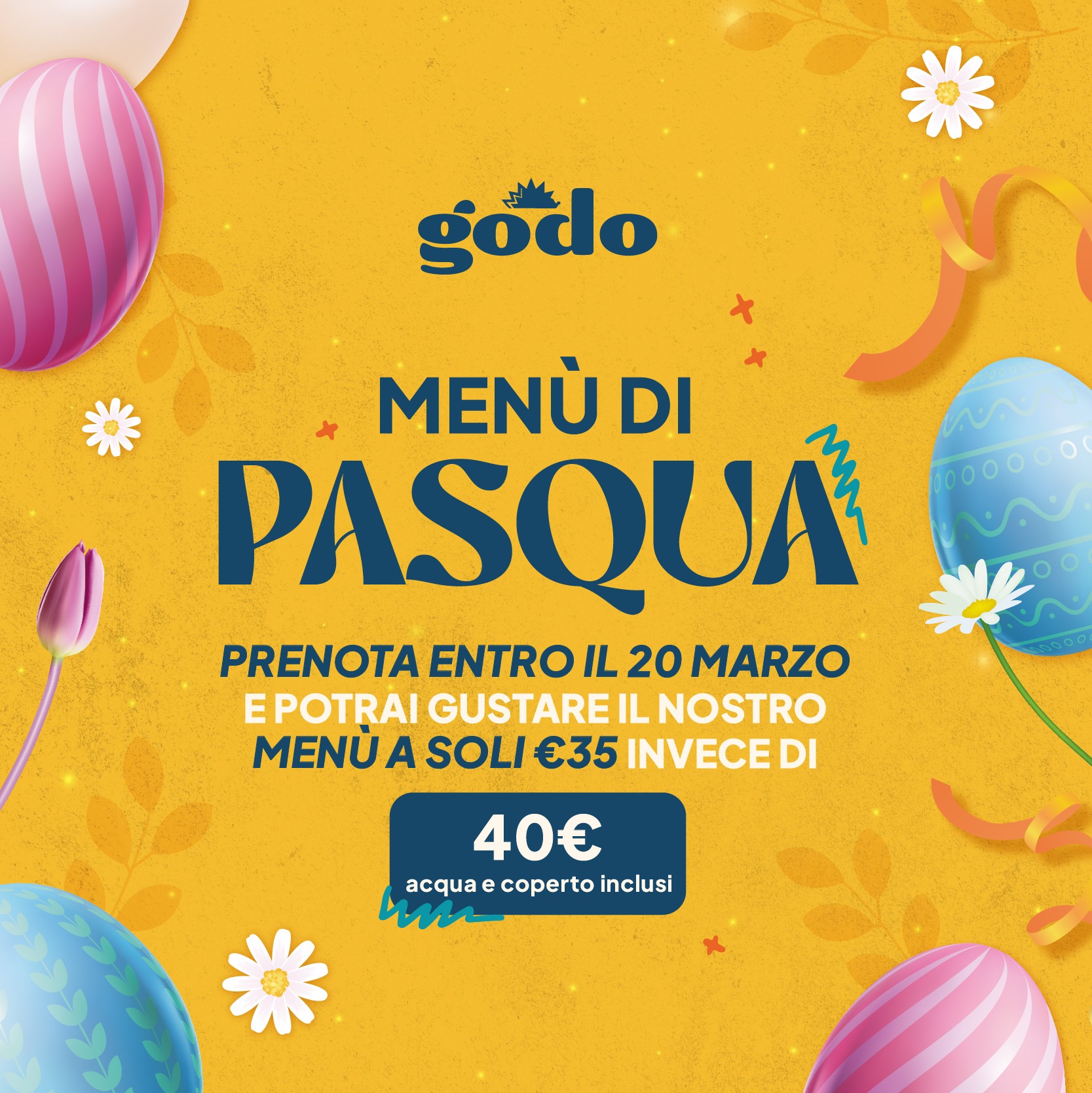 Che tu sia con amici, famiglia o colleghi, le salette accoglienti e l’ambiente easy fanno di Godo il posto ideale per cene leggere, celebrative o informali, dal martedì alla domenica, a cena e anche a pranzo dal lunedì al venerdì (business lunch top!).